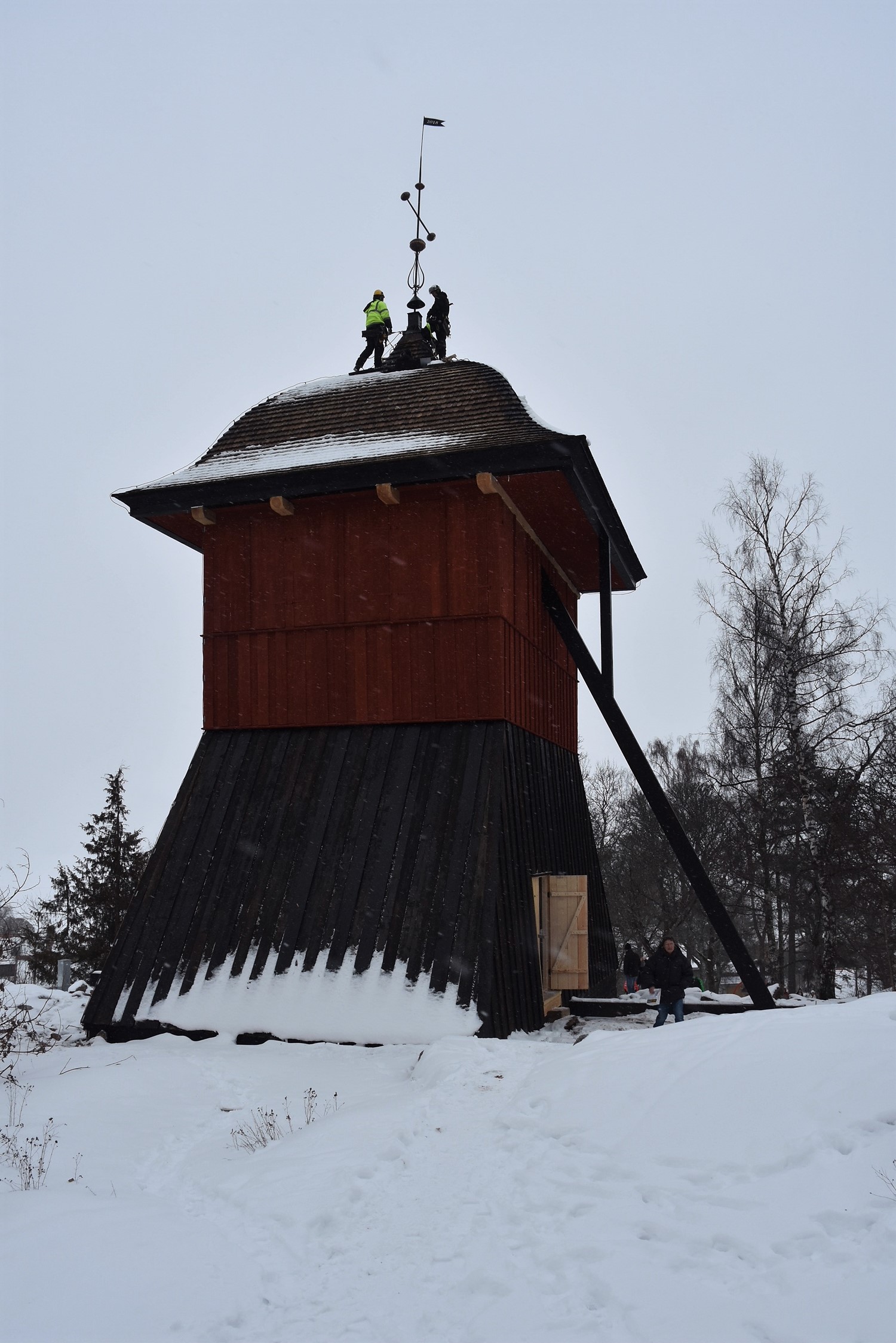 Husrestauratören fick 2017 i uppdrag att återuppbygga den nedbrunna klockstapeln.
